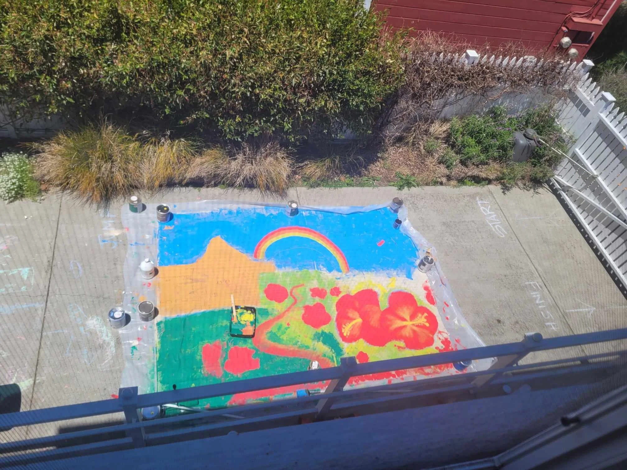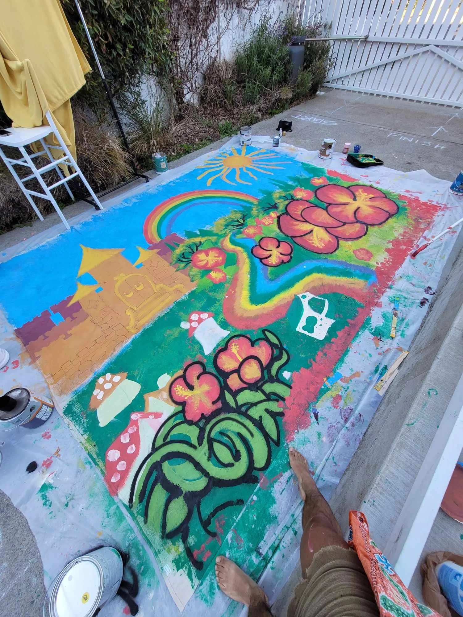 I was the resident teaching artist for QSP’s theater summer camp. Over the course of four days, I worked with campers to design and create the backdrop for their summer production— a parody of Cats set in a Hibiscus covered kingdom.